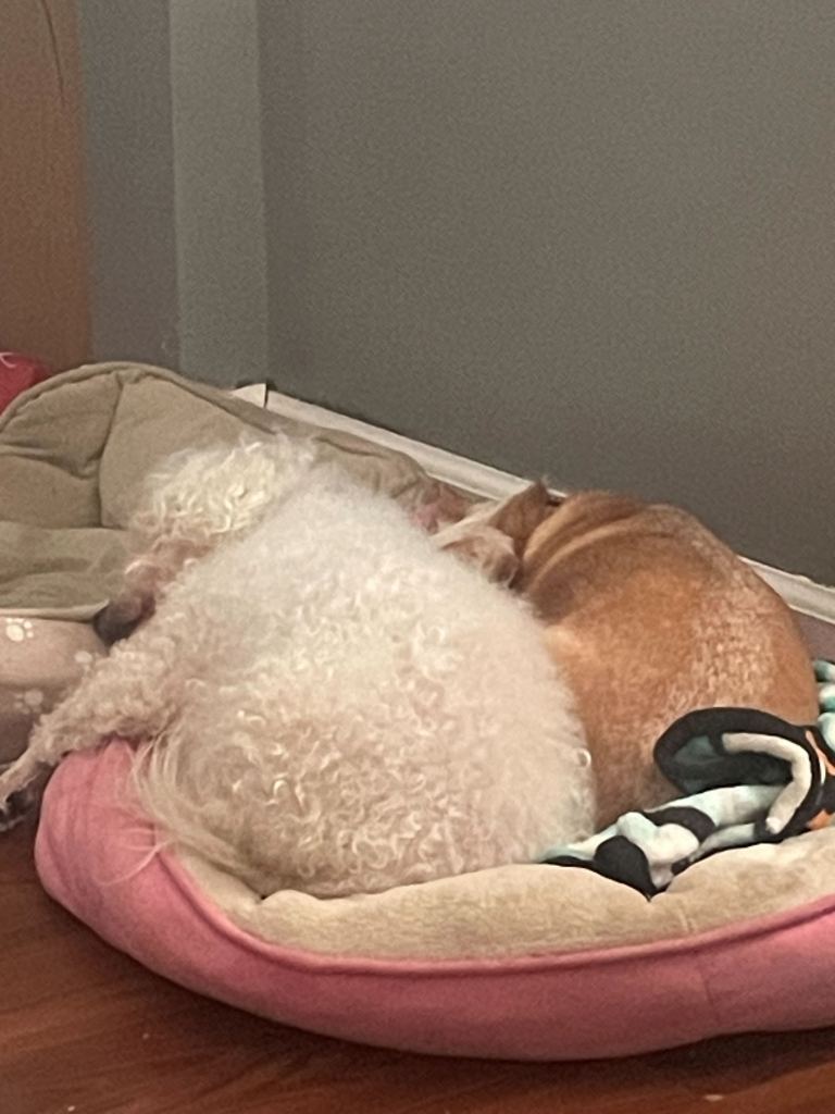 Pictured are our two older dogs. They are a bonded pair and go everywhere together. When I wake up, the dogs are wanting to go out. So I lead them outside. After I lead them back inside, they want food and water. And so I fill their dishes. And then I sit down with my coffee and write this daily blog. This is how I found them as I started typing. Peaceful and at rest. Their needs were met and they could relax. They will stay like this until I get up and refill my coffee cup or the kids start stomping around the house.